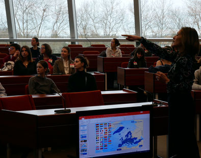 Cette visite a permis aux différents étudiantes et étudiants de découvrir les couloirs du Conseil de l'Europe au détour de la salle du comité des ministres. Ensuite, au sein d'une salle de réunion donnant sur le Parlement européen et la CEDH, Madame Anne Peroi a présenté l'institution, ses missions et priorités. Ces mots ont introduit l'échange avec le secrétaire général adjoint de l'institution, Bjørn Berge et Ugo, co-responsable du pôle Europe.